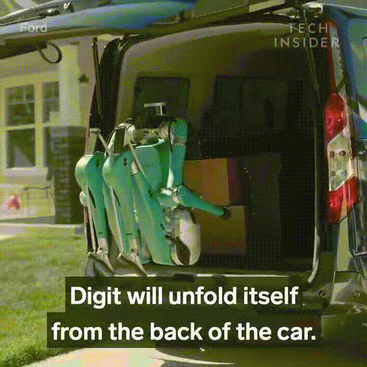 자율 주행차가 목적지에 도달을 하면 차안에서 접혀있던 Digit이 차 뒷편에서 펼쳐지고 차량내의 올바른 수화물을 잡아서 목적지 앞까지 배달을 해준다.