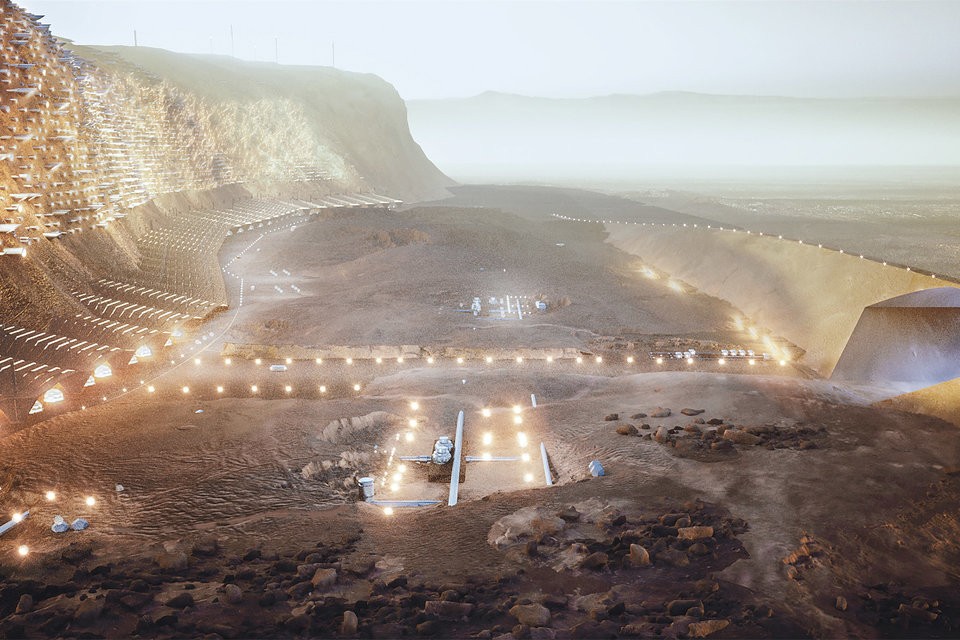 수직형 주거는 화성의 절벽 위에 건설되는 것으로 가정하였으며 100만명 이상이 거주 할 수 있는 건물의 구조는 거친 환경으로 때문에 터널과 바위 속에 설치된 모듈을 서로 연결하는 것으로 결론이 났다.
