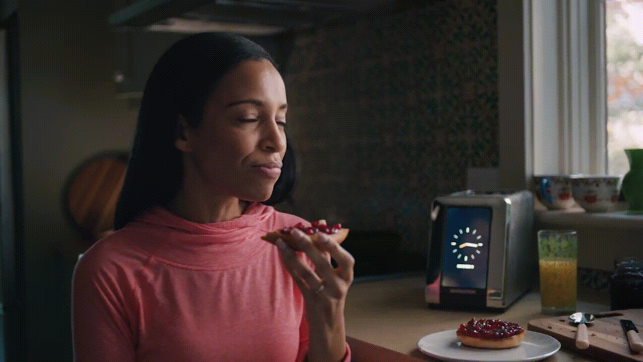 이 토스터는 터치스크린으로 63가지로 정교하게 세팅하여 빵, 베이글, 머핀과 와플까지 구울 수 있다.