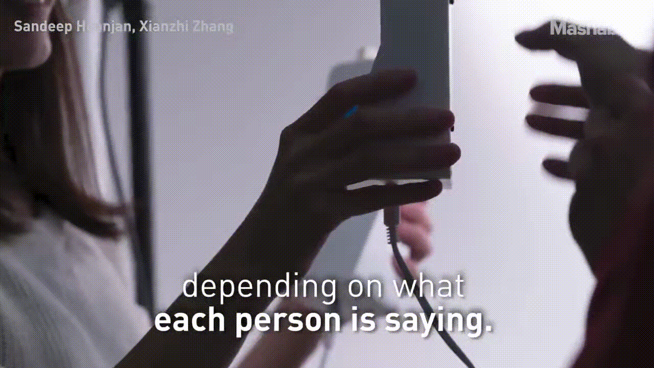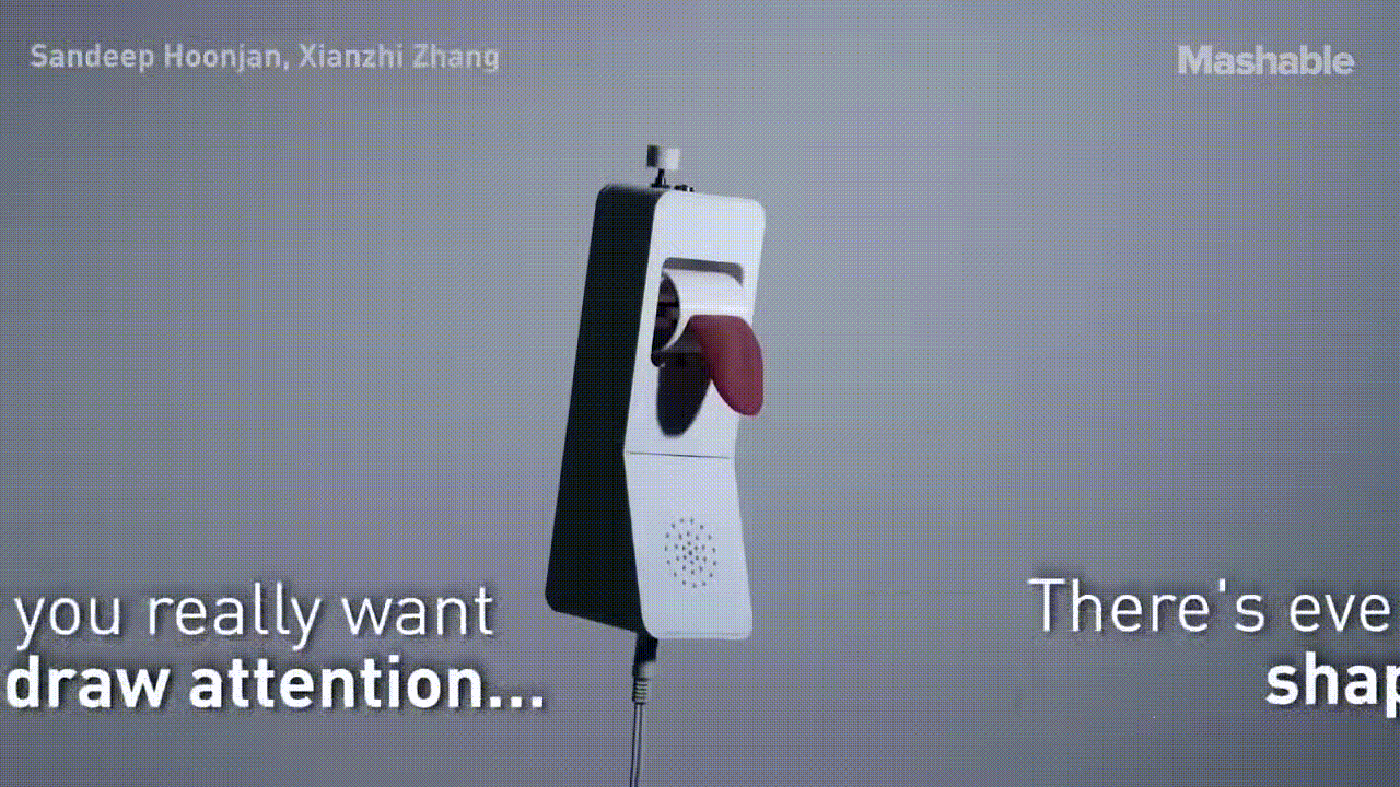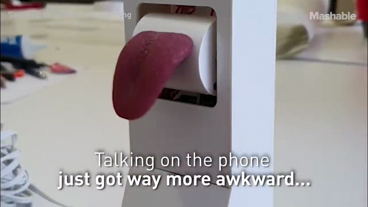 전화통화를 할때 상대의 말을 간격과 볼륨등으로 해석하여 햅틱(haptic) 패턴으로 만들어 전화기에 부착된 혀모양의 실리콘이 위아래로 움직이게 만들었다고 한다.