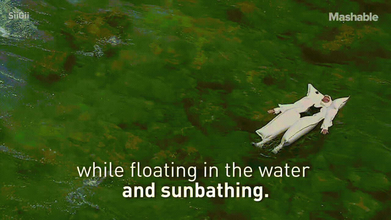 라텍스 재질로 되어 있어 물 위에서 일광욕을 하면서 몸 전체를 태양빛으로 막아낼수가 있다.