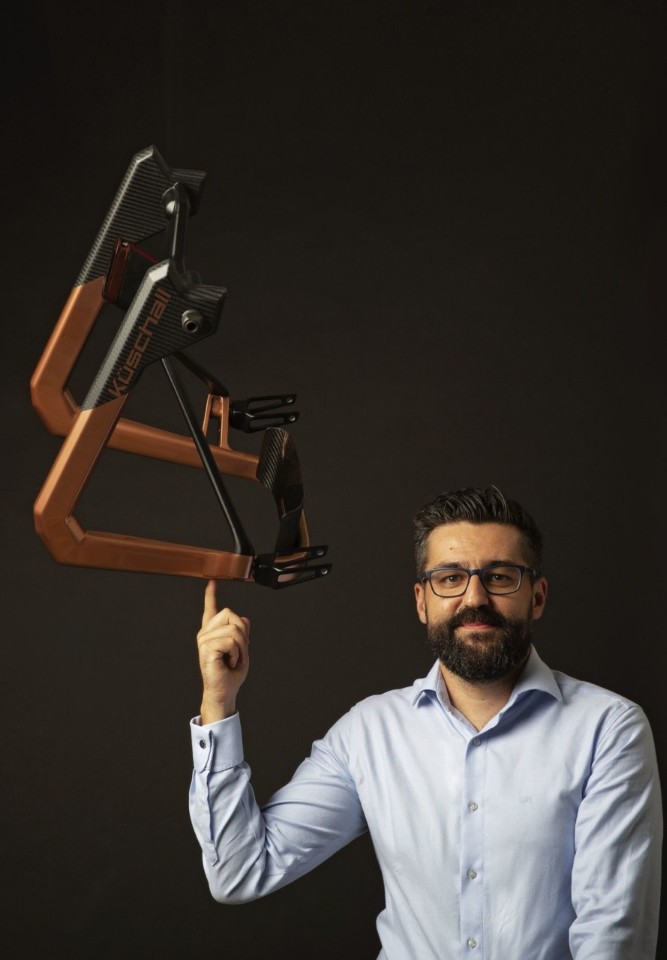 16살때 4지 마비가 된 스위스인 퀴샬 라이너가 고안한 휠체어로서 주 재료는 그래핀(Graphene)이란 소재라 제작을 하였다고 한다.