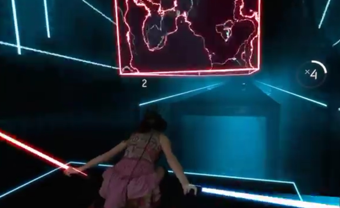 마치 "스타워즈"라는 영화에서 제다이의 광선검 같은 가상의 칼을 이용하여 날라오는 물체를 음악에 맞춰 춤을 추듯이 베는 게임으로, 빨간 물체는 빨간 광선검으로 파란 물체는 파란 광선검으로 베어야 한다고 한다.