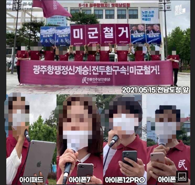 셋째, 미군철수를 운운하면서 최소한 삼성폰도 아닌 미제국에서 만든 애플폰을 들고 있다는 자체가 역겨운것이다. 그 아이폰에는 일본에서 만든 부품과 재료들이 덕지 덕지 들어가 있고 그 휴대폰을 만든 상당수의 조립장비가 일본에서 만든것이며 심지어는 애플폰을 터치할때 만지는 커버 유리는 일본 시즈오카에서 만든것일수도 있다.