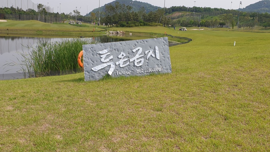 바다를 매립하였음에도 언듈레이션이 매우 심해 다소 치기 어려웠지만 골프장 옆에 고속도로가 있고 페워웨이 폭이 작아 공이 다른곳으로 날라가는 것을 방지하기 위한 커다란 펜스가 있어 생각보다(?) OB가 잘 나지 않아 공을 많이 잃어버리지 않았다. ㅎㅎ