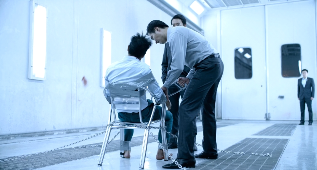 한편 미래자동차의 별채에서는 미래자동차의 오회장, 신정당의 장필우 의원 그리고 조국일보의 이강희가 안상구가 데리고 온 여자들과 벌거벗고 주지육림을 벌이고 있었고 조상무에게 잡혀간 안상구는 모처에서 오른손을 톱으로 잘린 린치를 당하게 된다.