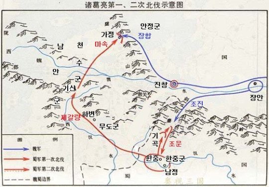 그래서 제갈량은 관중(지금의 시안)에 주도한 위나라의 정규군이 농서와 관중 사이를 연결하는 통로역할을 하는 가정 지역만 확실히 막거나 농서지방을 병탄하는데까지 시간만 끌어주면 위나라의 관중을 넘겨다 볼수 있는 베이스 캠프 확보를 할수 가 있었다.