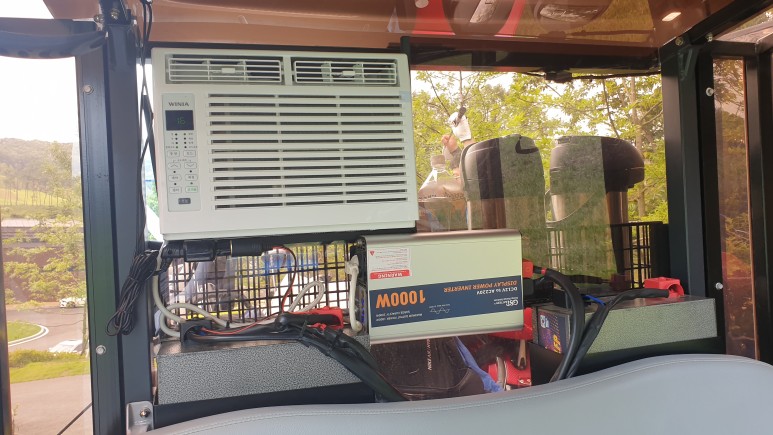 카트에는 소형 에어콘이 장착되었고 소형 선풍기를 2대 달아 더운 여름철에 카트안이 조그마한 쉼터가 될수 있도록 배려한게 인상적이었다.